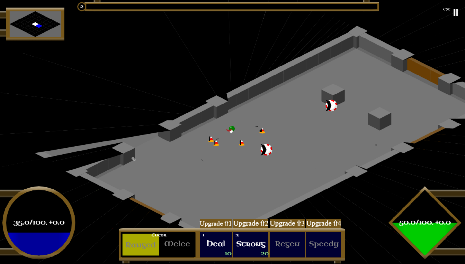 Designed as a demonstration project for the University of Nebraska at Omaha's CSCI 2510 Introduction to Game Programming course. Following the requirements of this course, the game has no sounds or sprites. Instead, the courses focuses on the creation of a game engine and game that mimic the APIs used by major commercial game engines (i.e. Unity and Unreal).